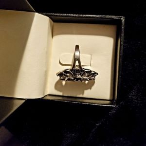 Sterling silver plated ring with 9 marquis cut onyx stones in the center and 12 small round cut hematite stones around the outer edge. Size 8.