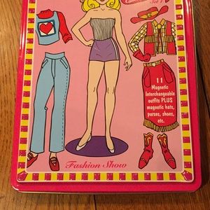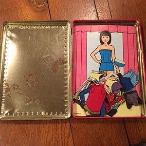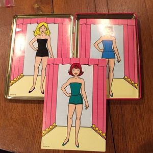 Gently used vintage 2000 magnetic Paper Dolls tin. Three models. Slight rust inside left side of tin. Please see photos.