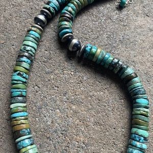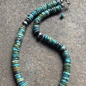 Sterling Silver Turquoise Heishi Bead Necklace.