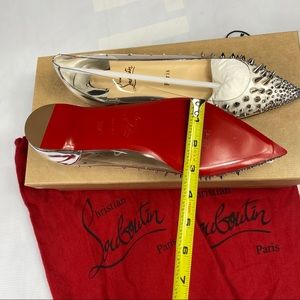 Christian Louboutin Women's Metallic Grotika Spiked Red Sole Flats 38.5 also includes 2 Red Louboutin dust bags.