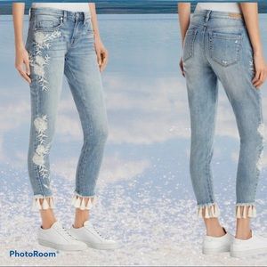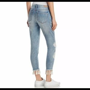 Blanknyc Embroidered Tassel-Hem Crop Skinny Jeans, Blue Sz 27 (waist 29”)