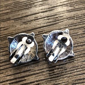 Vintage Round Clip Earrings with Rhinestone Center