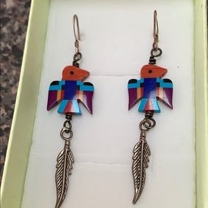 A bird design pair of earrings in multicolor. Handmade my native americans/indians