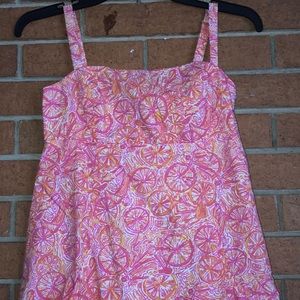 Lilly Pulitzer Lola Hotty Pink Ten Speed Cotton Dress An adorable sleeveless dress with an empire seam and patch pocket