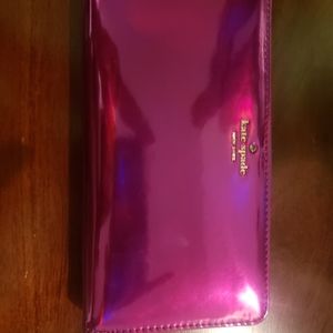 Up for sale is the matching 3 piece set of iridescent kate spade wallet, card holder, and keyring card holder in bajarose. All pieces are brand new never used come with tags and care cards. Pieces have been protected wrapped in bubble wrap and this is a HTF set let alone individual pieces. I will not separate only selling as set.
