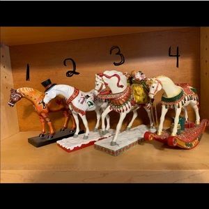 Noel, Polar Express, Frosty, & Ghost Horse. Ghost horse has one chipped ear and the polar express and frosty have a few cracks in their legs but are very structurally sound. Let me know what your best offer is! The ponies will be starting at $30 each or $75 for all 4