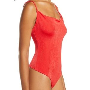 sleek sophisticated bodysuit—Adjustable spaghetti straps for that perfect fit—up high for modesty or lower for sexy evening wear...chic cowl neckline to enhance your shape...streamlined look with any outfit—dress up or down...easy to pair with high waist line or low rise...thong has plastic snaps...soft stretchy material...boho, streetwear, dance, evening wear, office, casual—easy addition to any wardrobe