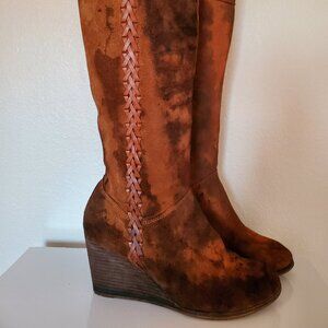 Leather suede wedge tall rodeo Western cowgirl Boot 10 1/2 11 brown black tan