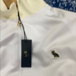 Very rare OVO tracksuit made with nice silk and the pants with side buttons. Gold inside and white outside with a cream colour for the collar and sides.