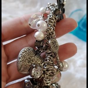 Silvertone stretch bracelet charms crystals beads dangles hearts keys findings