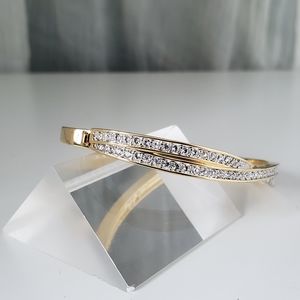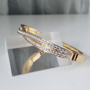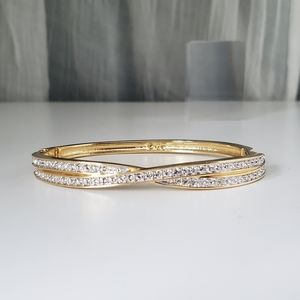 Swarovski Edith Goldtone Twist Rows Pave Hinged Bracelet