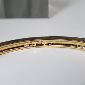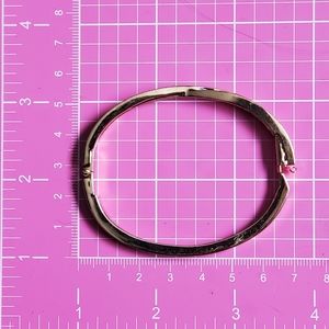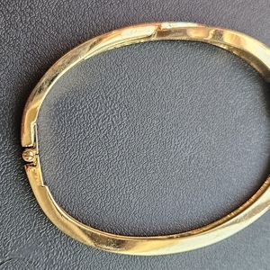 Swarovski (signed) gold tone hinged bangle featuring an elegant, crystal pave twist. This subtly blingy bracelet is hinged and shaped to fit closely to your wrist (see photos of the bracelet on my 6.5" wrist for reference), and snap-locks closed for security. Nothing compares to Swarovski crystals for quality, light-catching sparkle. Beautiful and elegant on its own, or layer with your other pieces ...
