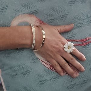 @maggieswann2 Hello. As a used item, there are some fine marks that I think are barely visible unless looking for them. I added 4 additional photos of the finish of the bracelet (both shiny sides) in daylight. Please refer to those photos to see what you think. Please feel free to make an offer based on what you see! Thank you!
