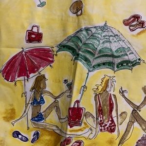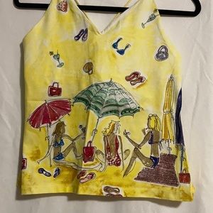 Oh-so-pretty halter top. Colorful beach scene with yellow background. Worn one time. Used in Excellent Condition in a smoke free household.