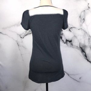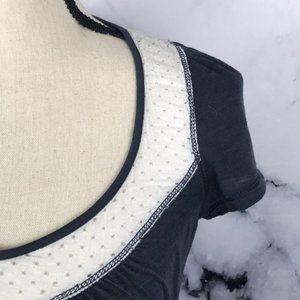 LUX pajama shirt dress eyelet detail size Large . Dark gray in color. Pretty eyelet trim at collar , buttons at front. Cap sleeves. Marked as large but runs smaller- please see measurements.