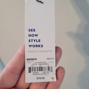 Brand new with tags. This stylish black faux leather jacket has never been worn. The size is 0X, fits like an XL.