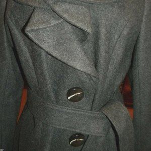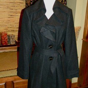 Fabulous Ruffled Charcoal Classic Wool Coat