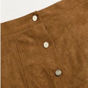 Brown faux suede button up skirt