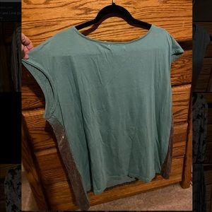 Sequined sleeveless shell in a stunning ombré brown-to-teal color. Sequins cover the front, soft light t-shirt fabric in back. Gently used, nonsmoking home.