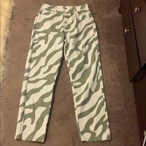 Very unique and trendy jeans. Loved these jeans just a size too small! Never worn before and would look great with a white turtle neck and Doc Martins!