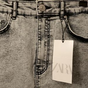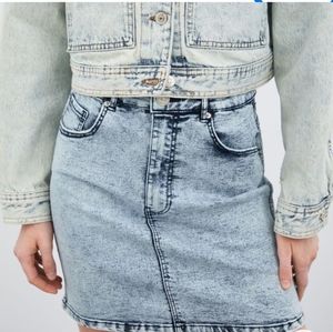 NWT! Zara washed effect high-waisted mini skirt with 5 pockets design. Front zip and metal button closure.