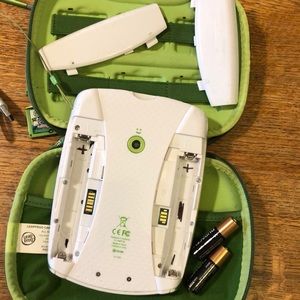 LeapPad 2 -green- with 9 fun cartridges ranging from preschool to grade 1 activities, USB cord for connection to computer, and green carrying case.
