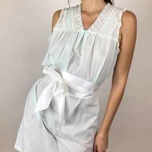 Vintage Baby Blue Cotton Lace Nightgown Slip Dress
