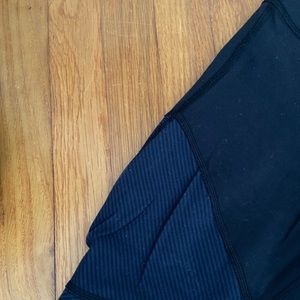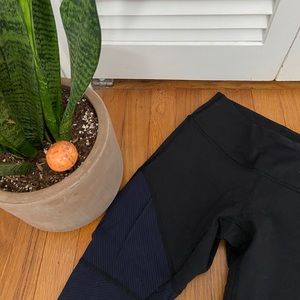 Mid right full length wunder under leggings, black with panels of navy and black stripes. In great shape even after light wear for a couple years. No pilling.