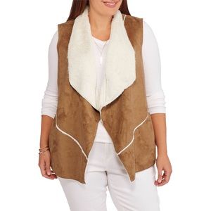 Plus-size faux sheepskin waterfall flyaway vest