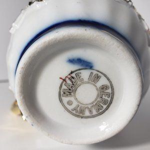 This gorgeously ornate hand-painted cup & saucer set is cobalt blue & white with gold trim. Made in Germany, manufacturer unknown. Cup is in excellent vintage condition & can be used for tea or coffee, hand wash only. All gold trim on cup is intact with no visible wear or flaws. Saucer is in good vintage condition but has been repaired (2 last photos). Saucer for decorative use only. Please study all photos as part of the description. Will be boxed & shipped with care. Saucer 6” wide, cup 3.25".