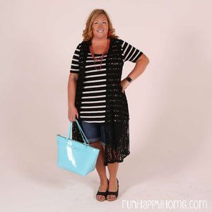 LulaRoe Joy Vest Long Black Pink Floral