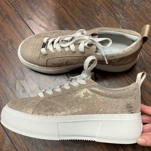 New Without Tags, J/Slides Costarr Sneaker in Gold Leather