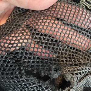 Pink black with rose gold detail and rose gold heart charm. This backpack was used by my daughter for 1 school year. She was only in elementary school. It was not abused at all. I took pictures where there was wear on the zippers and a holes on each of the mesh pockets. This backpack is expensive and I’m selling for a steal.