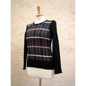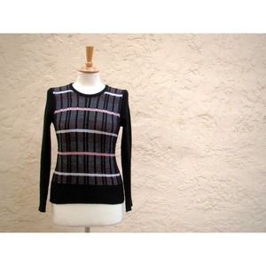 Vintage 60s Sweater. Black, White and Pink Metallic, Tag reads Plymouth. Made in Italy. Acrylic.