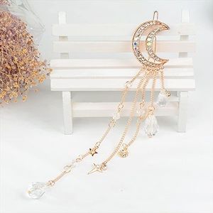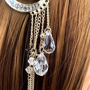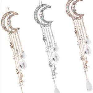Beautiful choose one color gold, rose gold or silver. Set of 3 available too. These are amazing and amazing quality! Must see these in person. Moons with inlaid crystals and hanging chains and clear crystals. Stunning! See all photos for measurements and close ups. Great deal! Limited time.