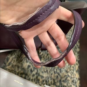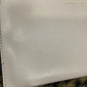 The large tote by MICHAEL KORS is in great used condition with the exception of handles and the pouch in great condition except for faint pen mark