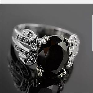 New 18k white gold Plated black sapphire ring