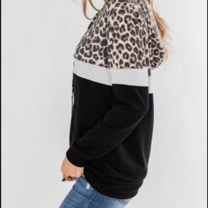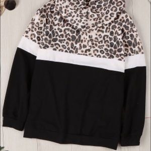 Black & leopard print color block pullover hoodie 🐆