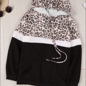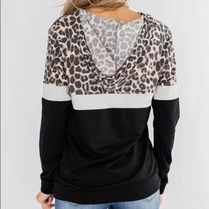 NEW Black & Leopard Color Block Hoodie