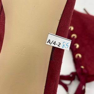 Red Suede Round Toe Shoes Lace Up Booties Classical Zipper Stiletto Heel Boot