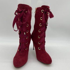 Red Round Toe Lace Up Boot Zip Stiletto Heel Boot