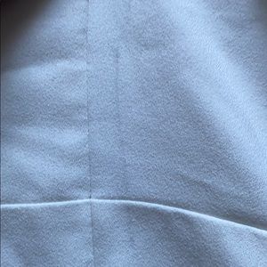 White blazer made from 86% polyester, 10% viscose, and 4% spandex