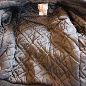 True Vintage. I took measurements flat on the exterior, and then I turned the jacket inside-out and measured the interior. I estimate this best fits a Medium, up to 38" bust/chest for comfort. But please measure a piece of outerwear from your own closet to compare.