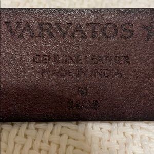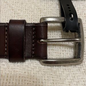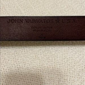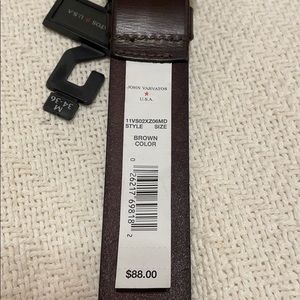Dark brown, genuine bridle leather John Varvatos Leather Belt. Brass buckle. 2 sizes available: M 34-36 and L 38-40. Please Specify size when purchasing. Thank you!