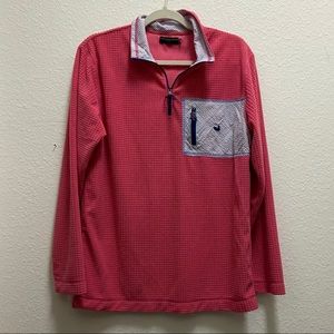 Like new! No signs of wear. It’s a bright hot pink color with baby blue detailing. It has one pocket on the front with a zipper. It’s a quarter-zip - prefect for layering! Could also fit a medium. It’s more of a hot pink than the first photo (stock photo) shows!