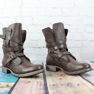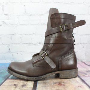Diba True Brown Leather Triple Buckle Mid Calf Moto Boots Size 6.5