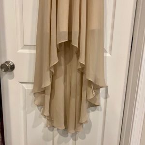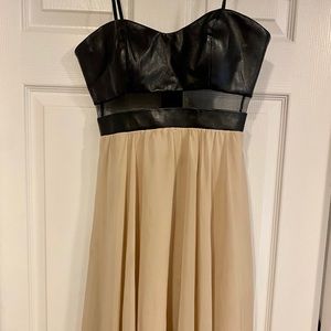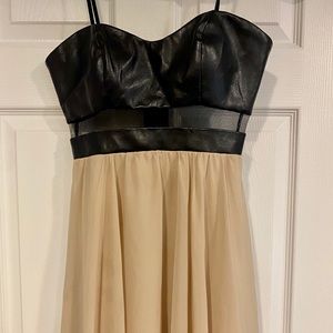 High- low dress. Top is strapless faux leather, with mesh. Worn for a night. Size is XS but normally I wear a medium and this fit fine