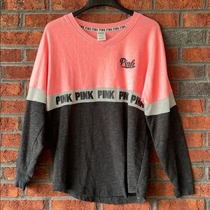 VS PINK V-NECK VARSITY CREW SWEATSHIRT