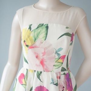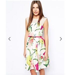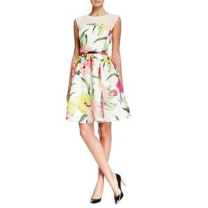 Ted Baker London 1 (Women's US Size 4) Iberis Floral Fit & Flare Dress. Measures flat approx. 15 inches armpit to armpit and 34 inches long with a 12.5 inch waist. 100% polyester. Preowned in great condition, original belt is missing. See photos.