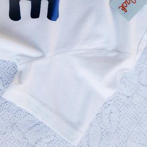 NEW white t-shirt for girls. Attractive heart logos, perfect for Valentines Day. Comes with a silver plated flower necklace, aprox 9.5 " in length with an extender chain
